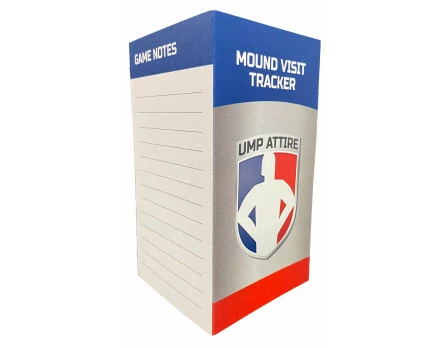 The Mound Visit Tracker is a bi-fold card with “Home” and “Visitor” side-by-side with plenty of space for writing “Game Notes” on the back.