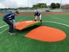 Portolite baseball pitching mounds give the pitcher the feel of a regulation baseball mound, while also allowing field crews the ability to move it with ease. Each baseball pitching mound is designed with a full body, high performance poly protected resilient core with fiberglass reinforcement giving the pitcher a solid, no bounce, yet cushioned baseball mound that reduces knee and ankle strain. Portolite pitching mounds are covered with the highest quality nylon AstroTurf® available in Clay or Green colors. Portolite simulated pitching rubbers last ten times as long and have a hidden wear pad underneath the turf immediately in front of the pitching rubber. Built with gentle slopes and tapered edges to give the pitcher the highest level of comfort. Two Piece Full Length Game Mounds are available in 6”, 8” and 10” sizes.